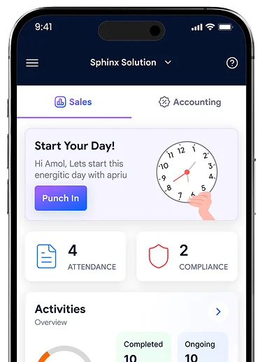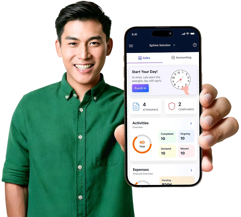 APRIU is a field workforce management and business operations app that combines accounting-style features (similar to Tally) with real-time field team tracking in one platform. It helps businesses manage sales, attendance, orders, collections, and reports from a single mobile-first system.