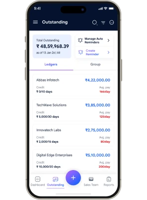 Instead, it provides essential business features such as sales reports, ledger-style summaries, outstanding tracking, and inventory visibility directly inside the app — along with advanced field management tools.